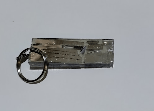 Bright blue words stick out against the luminescent background and a reflective mirror stands out on the back. This keychain is a hilarious memento that offers a positive distraction