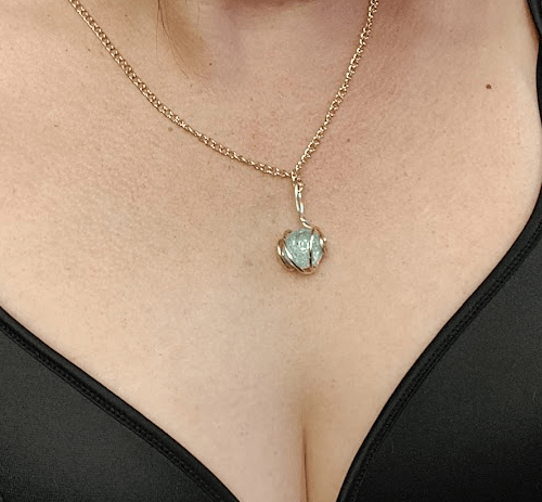 The gold chained necklace looks as if it’s holding a blue-tinted iceball that sparkles with the sun. The extraordinary colors and gypsy vibe make it easy to pair with any outfit for all ages