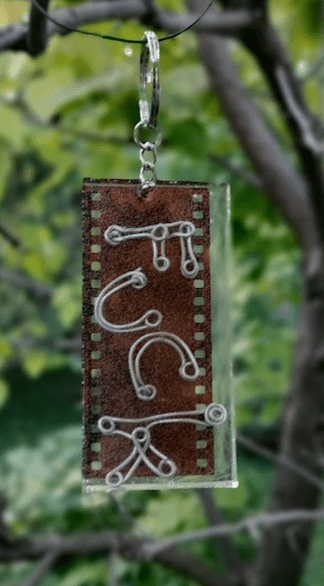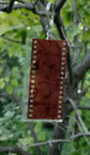 Made with old recycled photo negatives from 2000. ‘Fuck’ is fashioned out of silver steel wire and encased in epoxy resin.